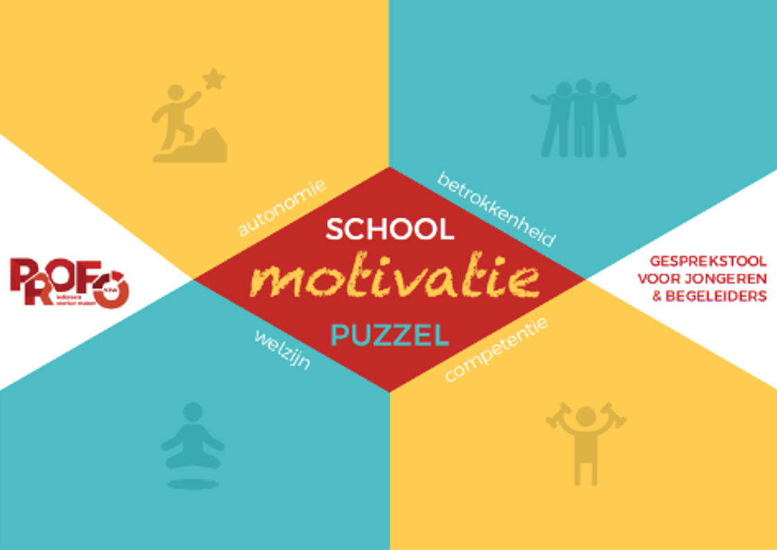 PROFO vzw ontwikkelde deze tool in een uiterst uitdagende periode voor onderwijs en welzijn. Aan de hand van de Schoolmotivatiepuzzel krijgen jongeren een stem zodat begeleiders en ouders samen met hen doelgerichte stappen kunnen zetten om de motivatie te verhogen. Zo hebben ze de beste kans om terug gemotiveerd naar school te gaan en om vroegtijdig schoolverlaten te voorkomen.