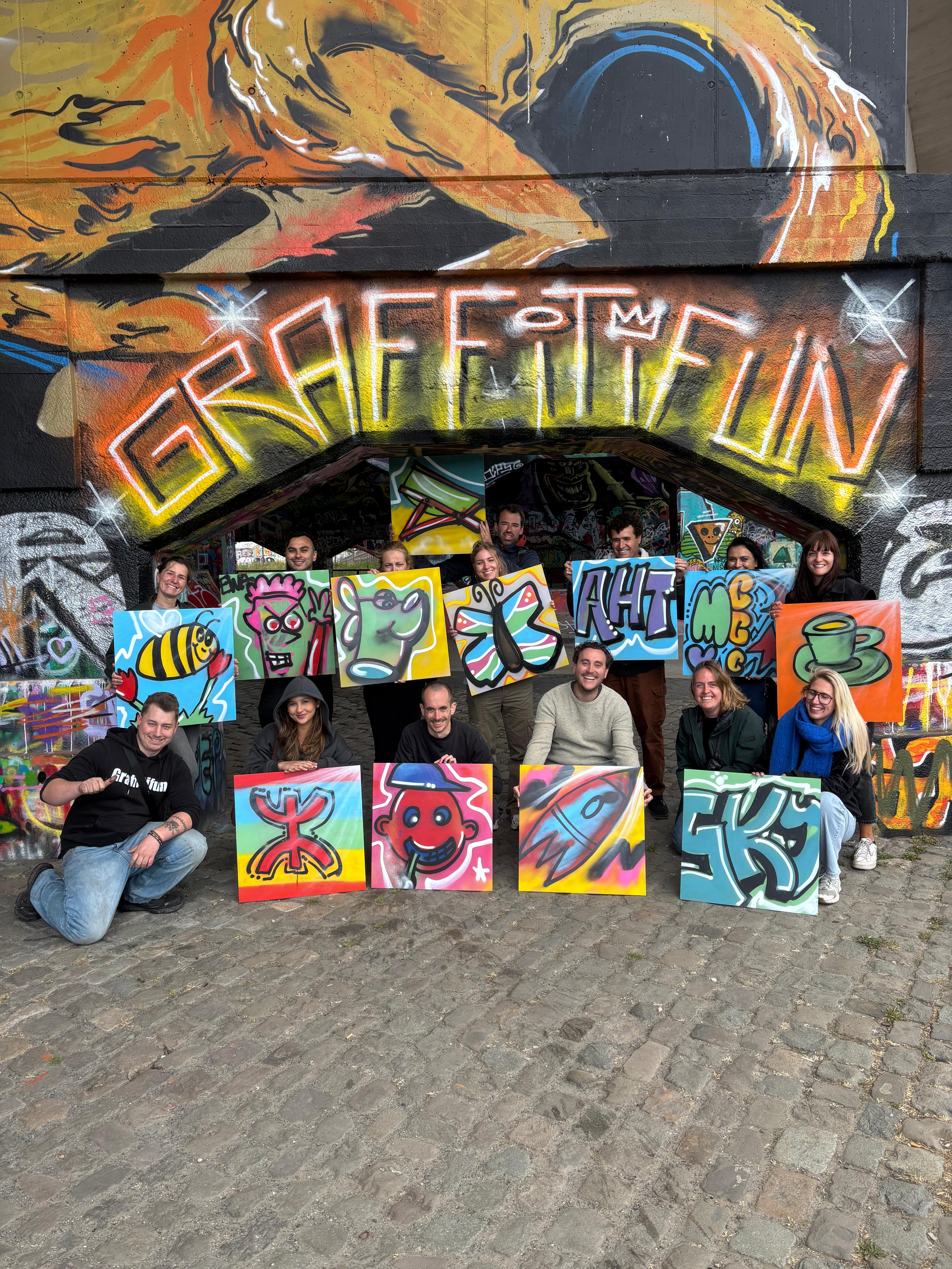 Het einde van het schooljaar is voor onze teams een moment om terug te kijken op het afgelegde parcours. Een parcours om trots op te zijn! Het ideale moment voor een teambuilding dus. Onze Antwerpse medewerkers maakten het bont met Graffitifun BV Europe in een hele toffe - en legale - workshop. Onder deskundige begeleiding kon iedereen hun ware kleuren laten zien! Maar niet alleen de creatieve honger werd gestild: we genoten ook van een heerlijke lunch bij Bar Nest, een initiatief van onze partner Rising You. Team Antwerpen is klaar voor de eindsprint!